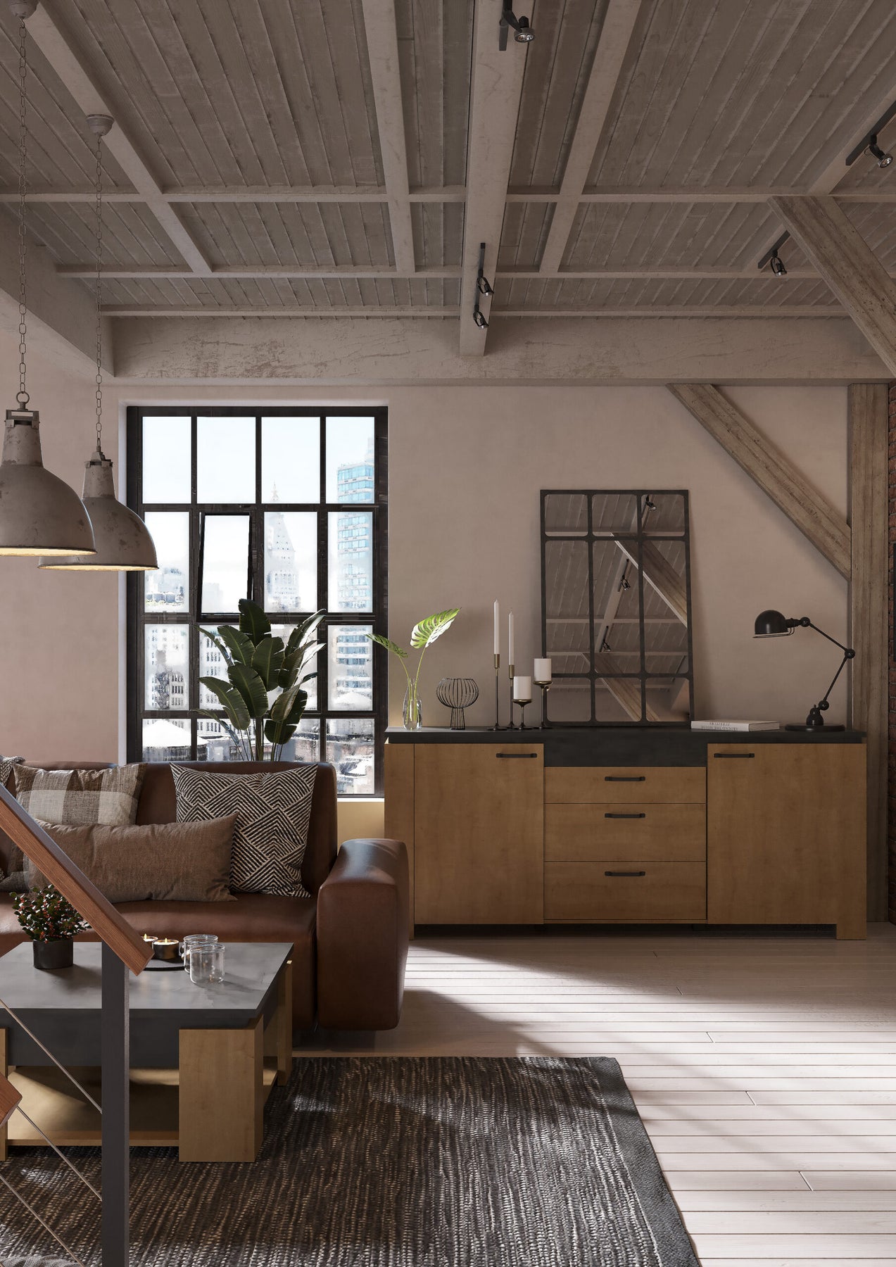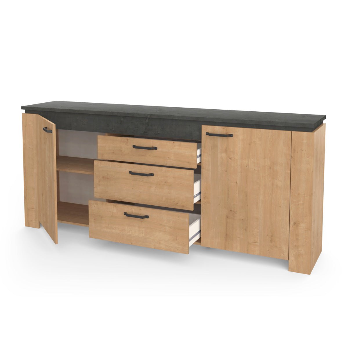 Breng kracht en karakter in je interieur met het TV-meubel ‘Hamilton’, uitgevoerd in een robuuste combinatie van Hamilton Oak en Sidewalk-afwerking. Met zijn royale breedte van 204 cm biedt dit meubel ruim plaats aan je televisie, apparatuur en decoratie.
