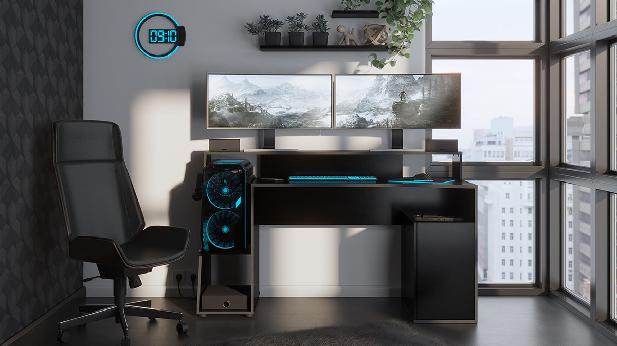 Met een breed werkblad van 158,2 cm biedt het ruim plaats voor meerdere schermen, accessoires en meer. De geïntegreerde opbergunit is ideaal voor het veilig opbergen van een gameconsole of computerkast, waardoor je ruimte georganiseerd en kabels netjes weggewerkt blijven.