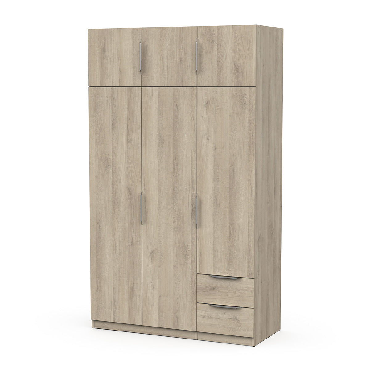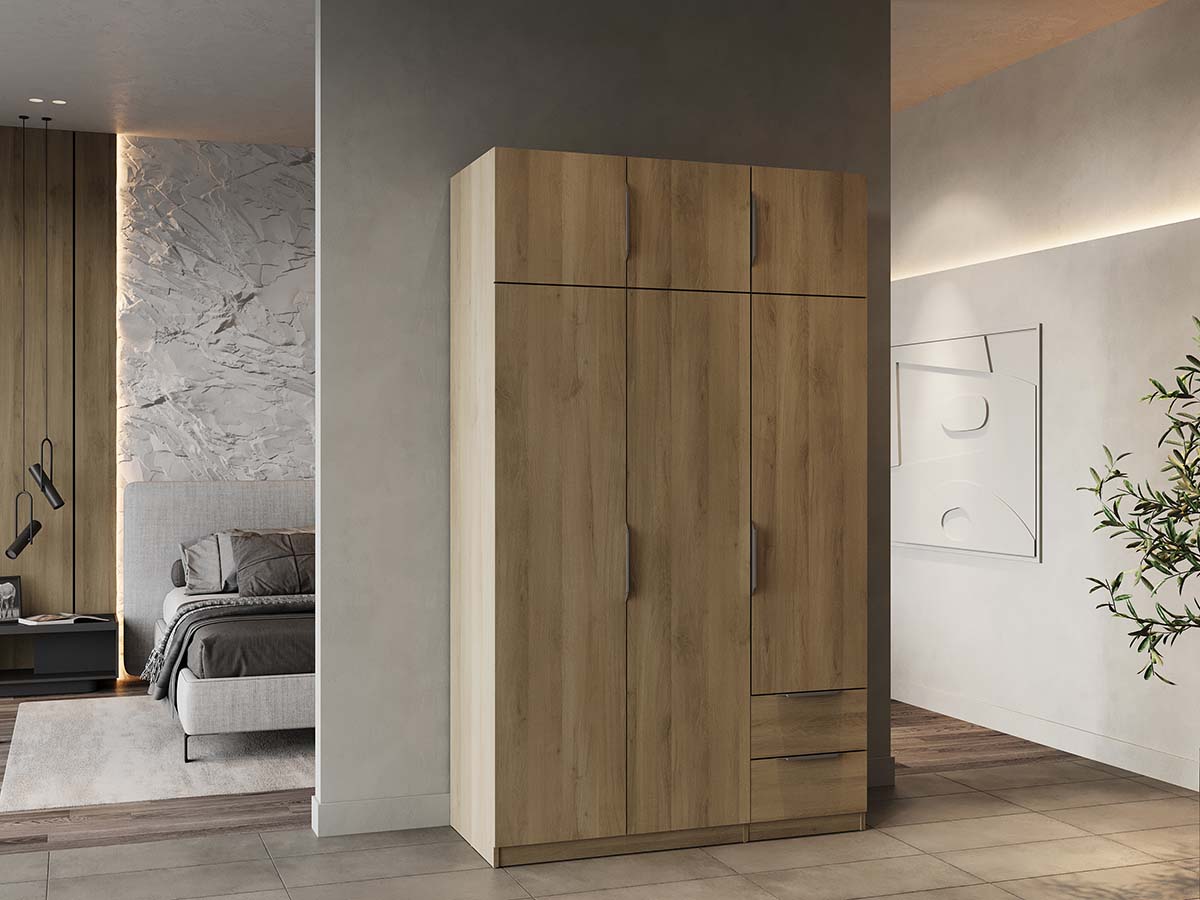 Omschrijving: De MIKE kast is een stijlvolle en praktische toevoeging aan je interieur. Met 6 deuren en 2 lades biedt deze kast voldoende opbergruimte voor kleding en persoonlijke spullen. De functionele indeling met garderoberuimte en planken maakt het gemakkelijk om alles georganiseerd te houden. Het Kronberg Eiken design gecombineerd met de Matt Witte afwerking voegt een tijdloze elegantie toe aan je slaapkamer of andere ruimtes.