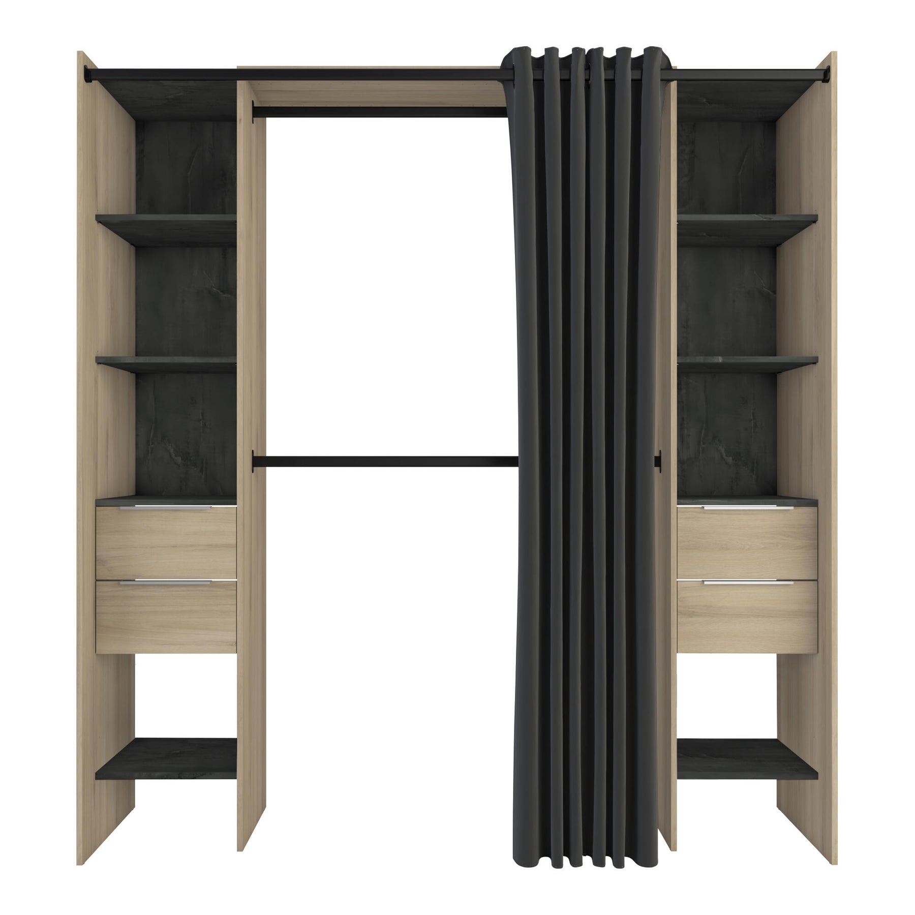 Een polyester gordijn in zwart (H 200 x B 203 cm) voor een elegante afsluiting en gemakkelijke toegang.