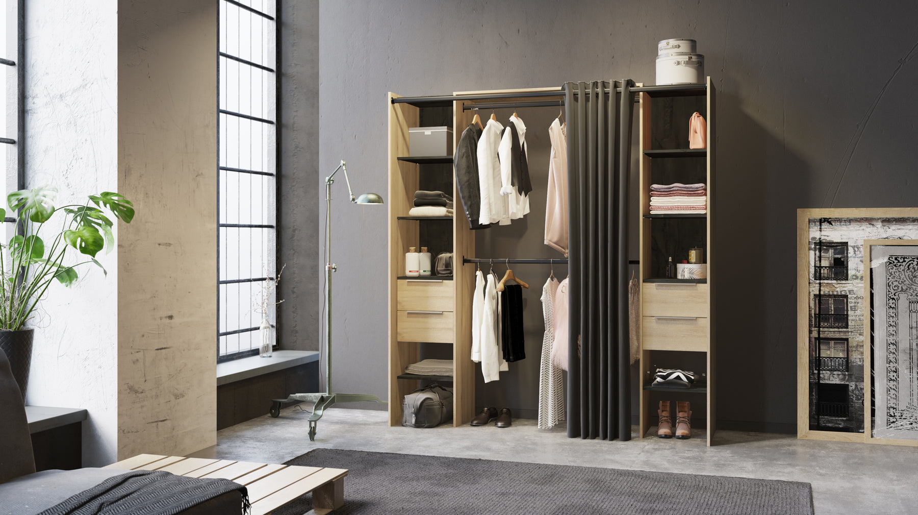 Deze garderobekast combineert een eigentijdse uitstraling met praktische opbergmogelijkheden, ideaal voor kleinere ruimtes of een stijlvolle toevoeging aan je interieur.