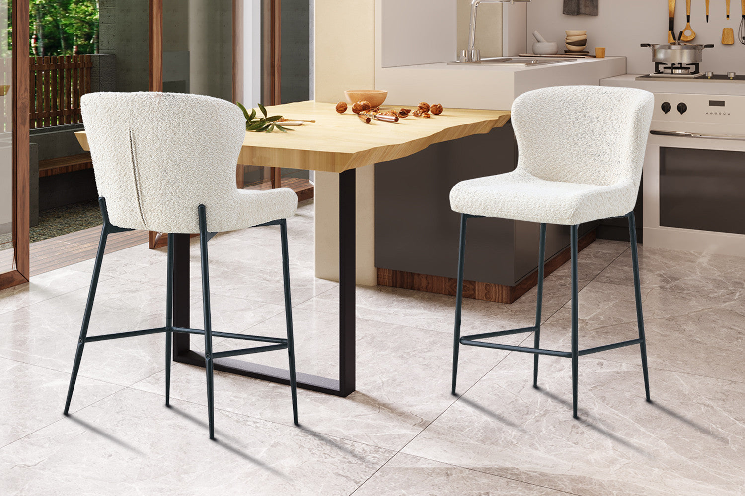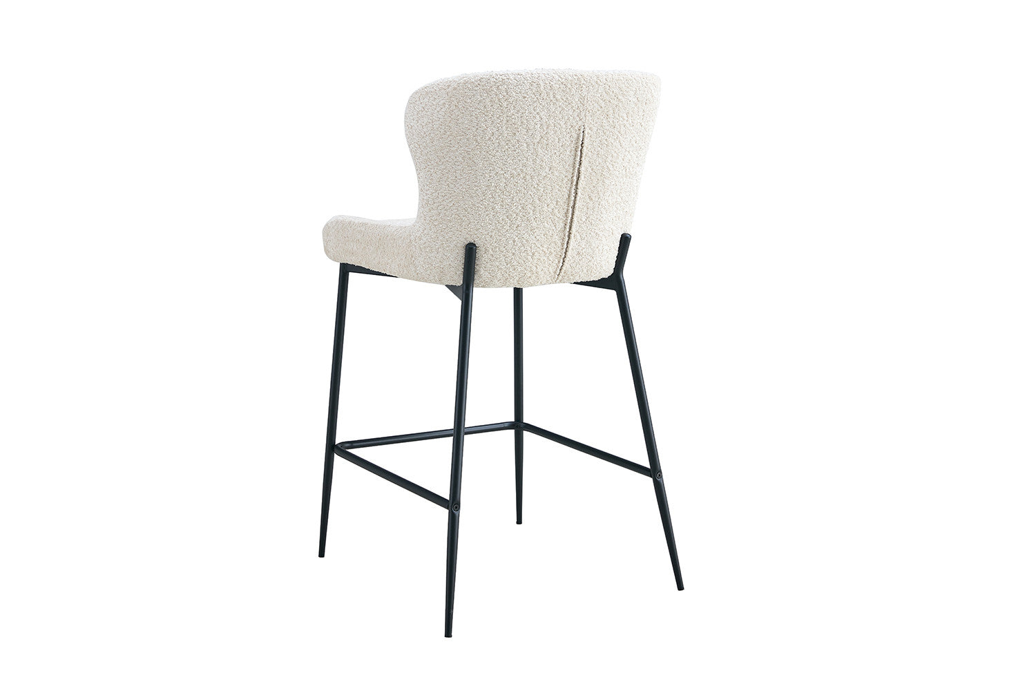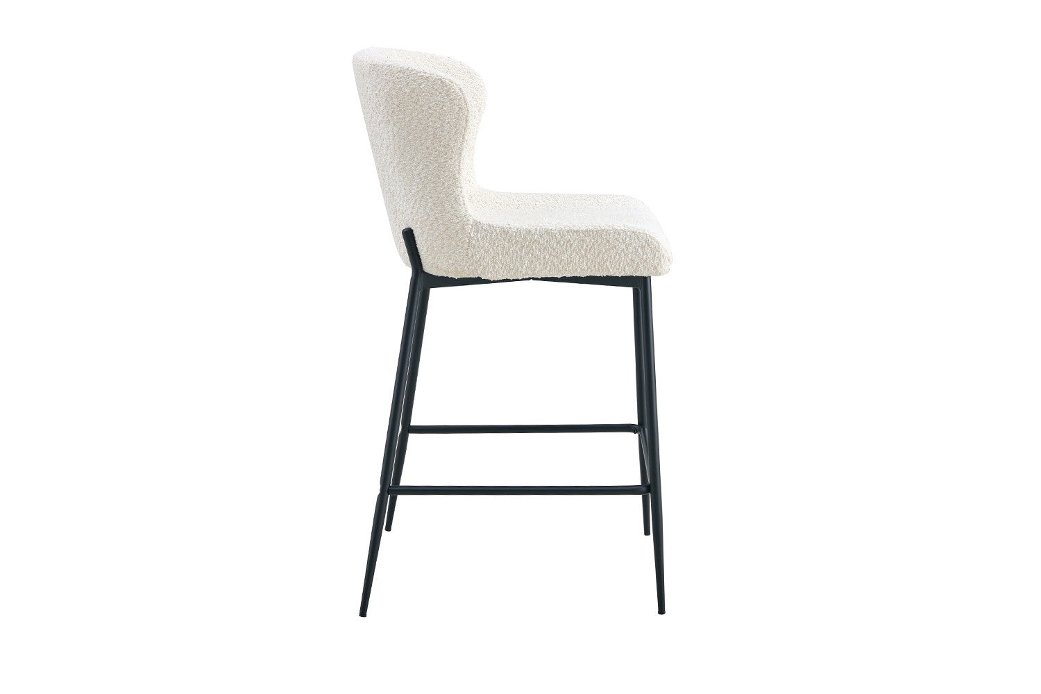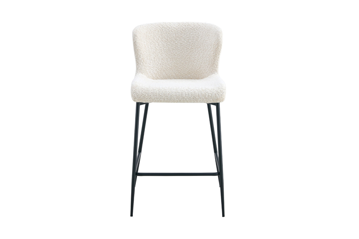Productbeschrijving: Voeg zachte elegantie en modern comfort toe aan je interieur met de Lisa counterstoel in bouclé ecru. Dankzij de luxueuze bekleding en het eigentijdse design past deze stoel perfect aan een kookeiland of een hoge tafel. De zachte bouclé stof geeft een warme, stijlvolle uitstraling terwijl het zwarte metalen onderstel voor een strakke, stabiele basis zorgt.