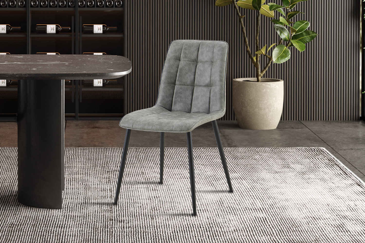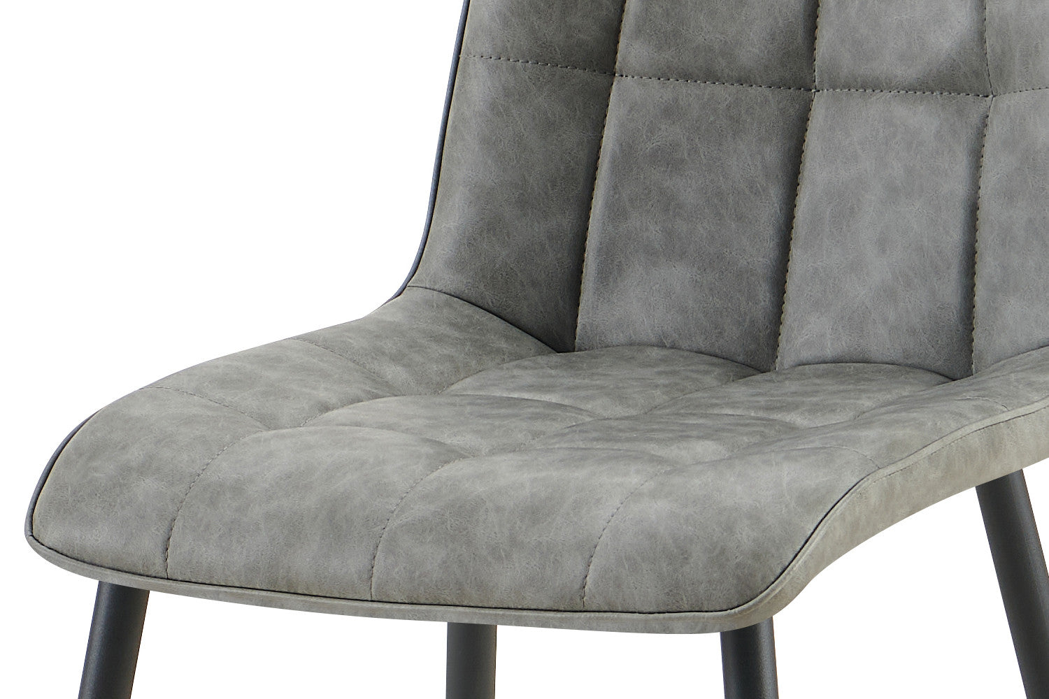 Voeg karakter toe aan je interieur met de Furas stoelen, uitgevoerd in een stijlvolle vintage grijze PU-lederlook. Het licht afgeronde zitvlak en de metalen poten geven deze stoelen een industriële uitstraling die perfect past in zowel moderne als rustieke settings.