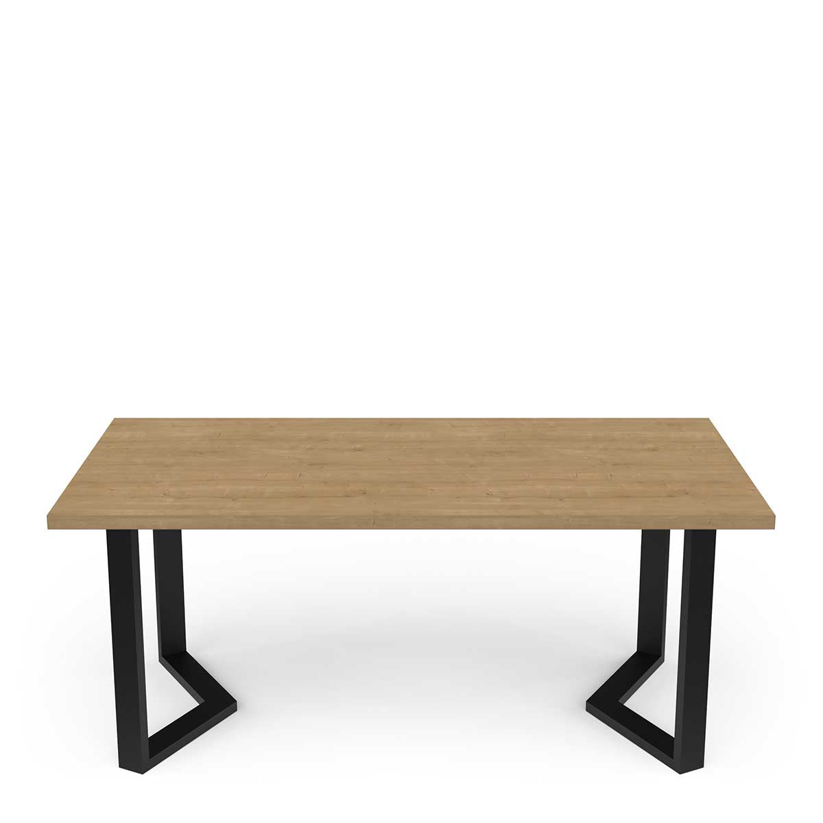 De Craft V eettafel combineert modern design met tijdloze materialen. Het tafelblad in warme Hamilton Oak-look rust op een stevig, matzwart onderstel met een unieke V-vorm – een echte blikvanger in je eetruimte.
