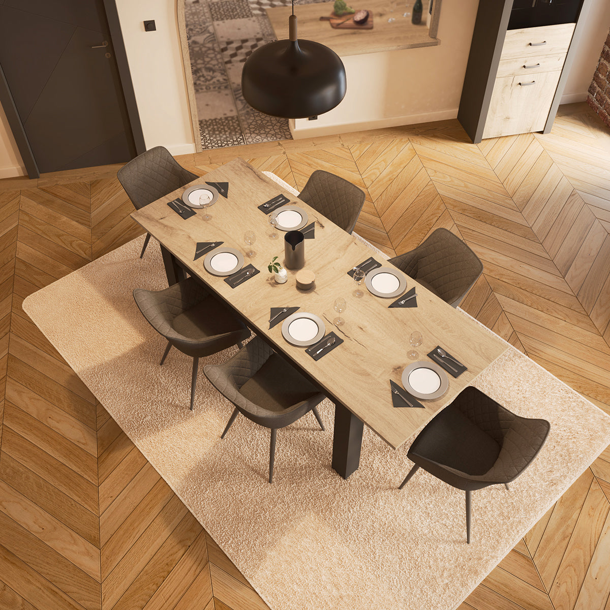 De Extendable Table Aubrac combineert een elegante licht eiken afwerking met stijlvolle ebony accenten voor een moderne en tijdloze uitstraling. Dankzij het uitschuifbare tafelblad op kogelgelagerde rails verleng je de tafel snel en moeiteloos wanneer je extra plaats nodig hebt. De stevige constructie zorgt voor stabiliteit en duurzaamheid, terwijl het strakke design perfect past in zowel moderne als klassieke eetruimtes. Ideaal voor gezellige diners én grotere gezelschappen.