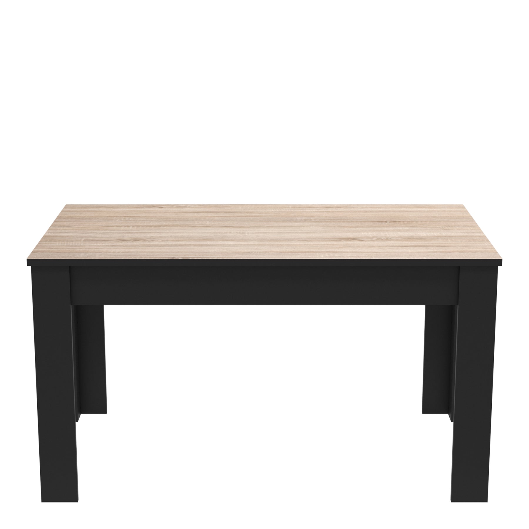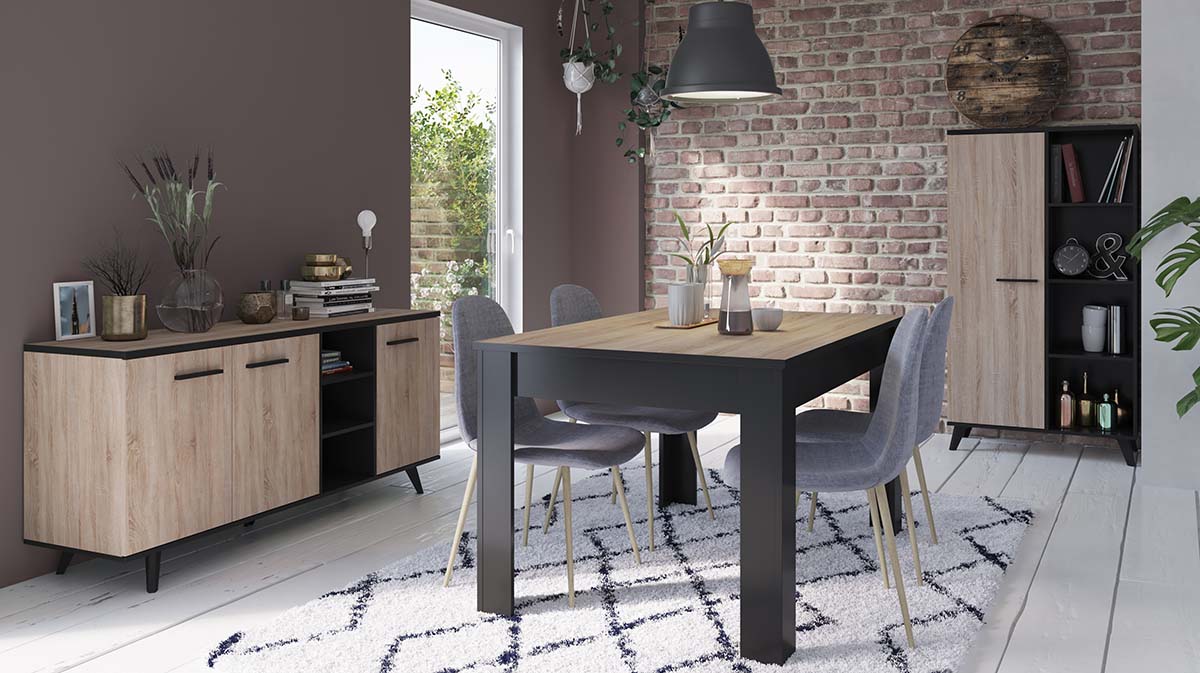 De Table Wayne straalt een trendy industriële stijl uit dankzij de combinatie van geborsteld eiken en zwarte accenten. Het compacte formaat maakt deze eettafel geschikt voor zowel kleinere als grotere eetruimtes, terwijl ze toch comfortabel plaats biedt aan 4 tot 6 personen. De kwalitatieve afwerking en de licht schuine zwarte poten geven de tafel een moderne en robuuste uitstraling die perfect past in uiteenlopende interieurs.