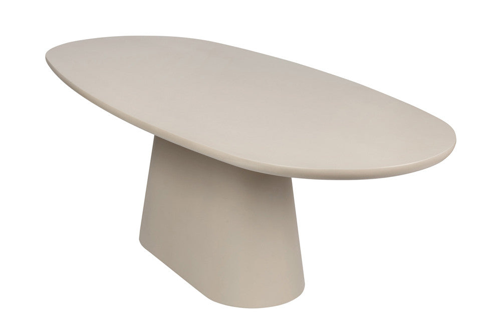 Uitgevoerd in cement beige met een robuuste uitstraling, past deze tafel perfect in een hedendaags of minimalistisch interieur. Zowel het blad als de structuur zijn vervaardigd uit hoogwaardig MDF met een cementcoating, wat zorgt voor een solide en onderhoudsvriendelijk geheel.