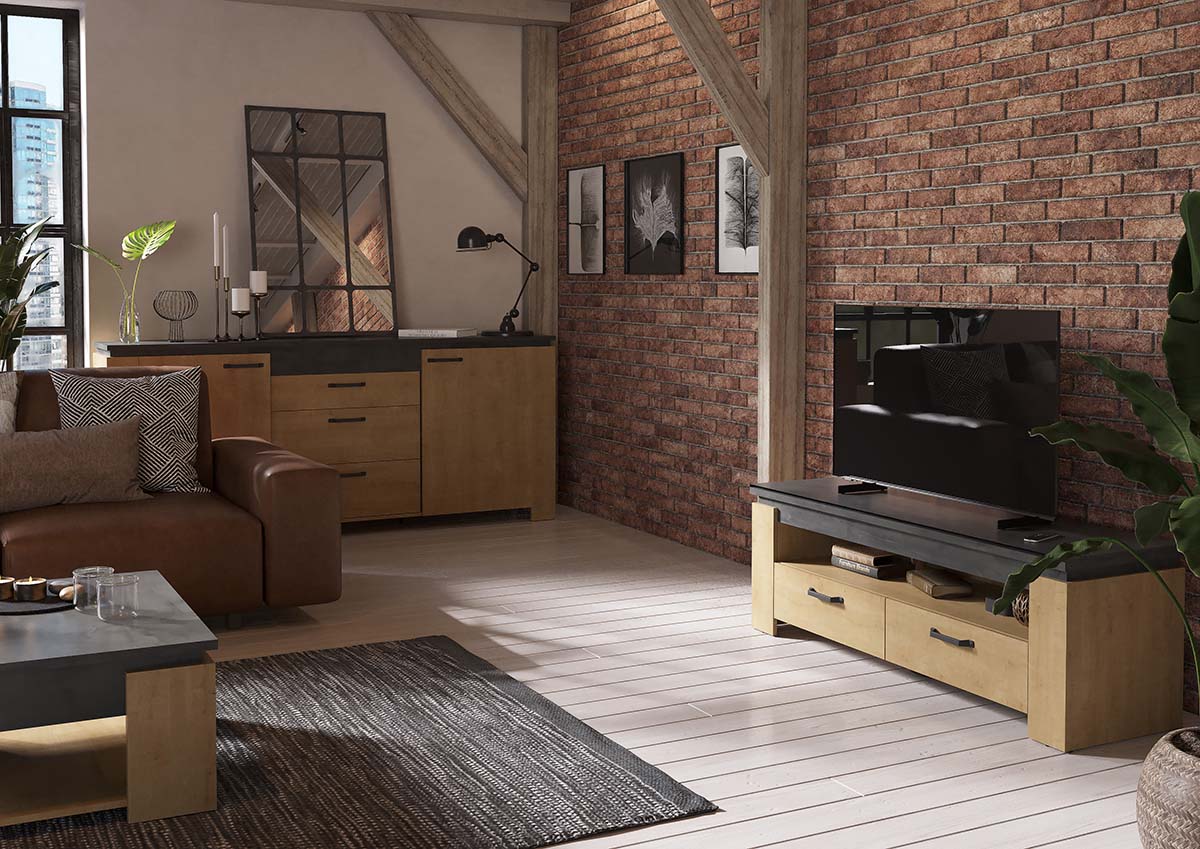 Austin TV-Meubel – 140 cm – Hamilton Oak / Sidewalk