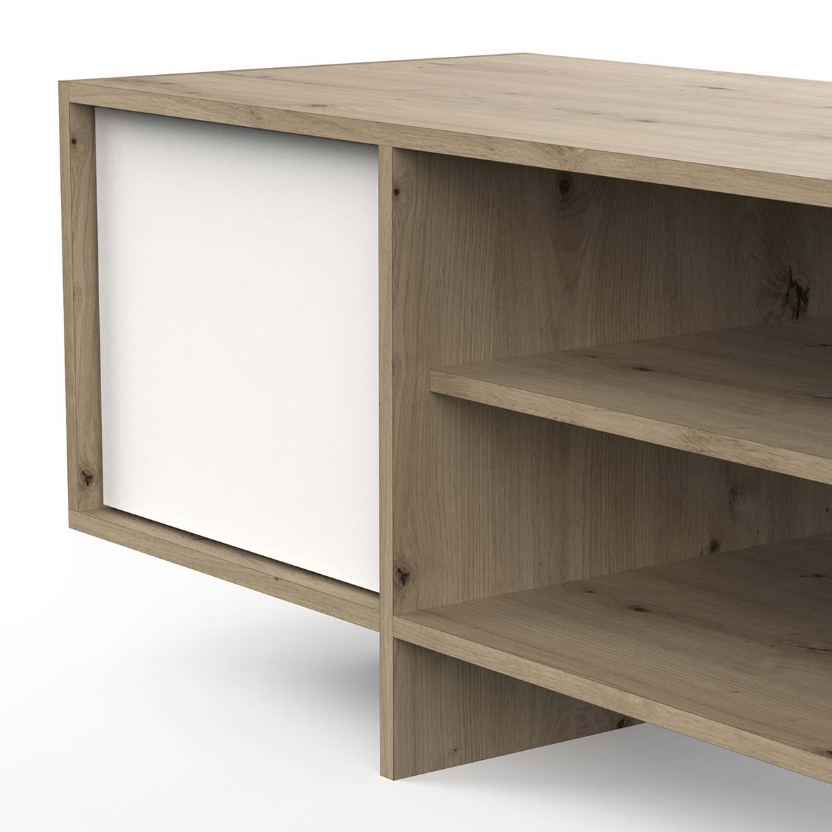 Eenvoud ontmoet elegantie in het Lead TV-meubel. Geïnspireerd op de minimalistische Japanse stijl, combineert dit meubel Artisan Oak met strak wit voor een rustige en moderne uitstraling.