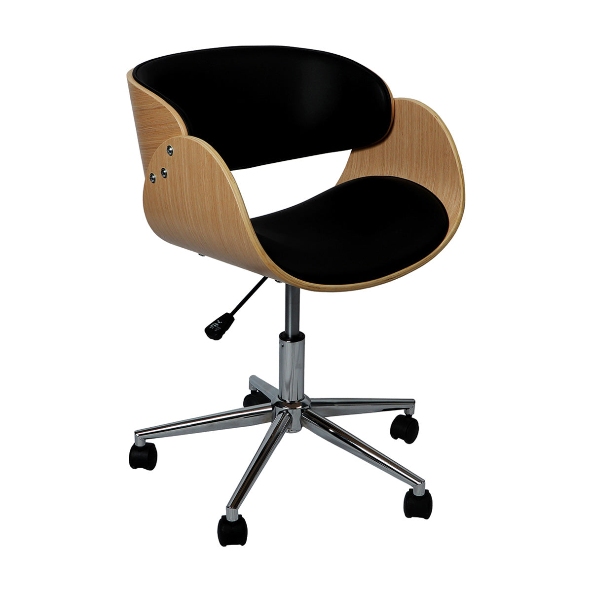 De Junon bureaustoel combineert modern design met natuurlijke accenten. De zitting in zwart materiaal in combinatie met het licht houten frame zorgt voor een frisse, Scandinavisch geïnspireerde uitstraling. Dankzij het compacte formaat past deze stoel perfect in elk thuiskantoor of werkhoek.