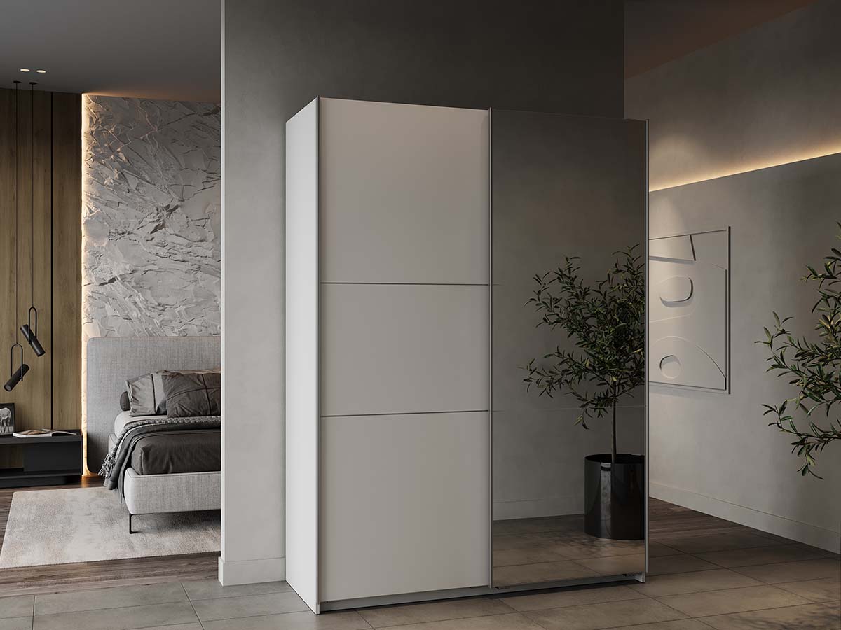 Le placard à portes coulissantes OAK offre une combinaison de style et de fonctionnalité, parfait pour une chambre moderne. Le design mat blanc dégage simplicité et élégance et s'intègre dans presque tous les intérieurs.