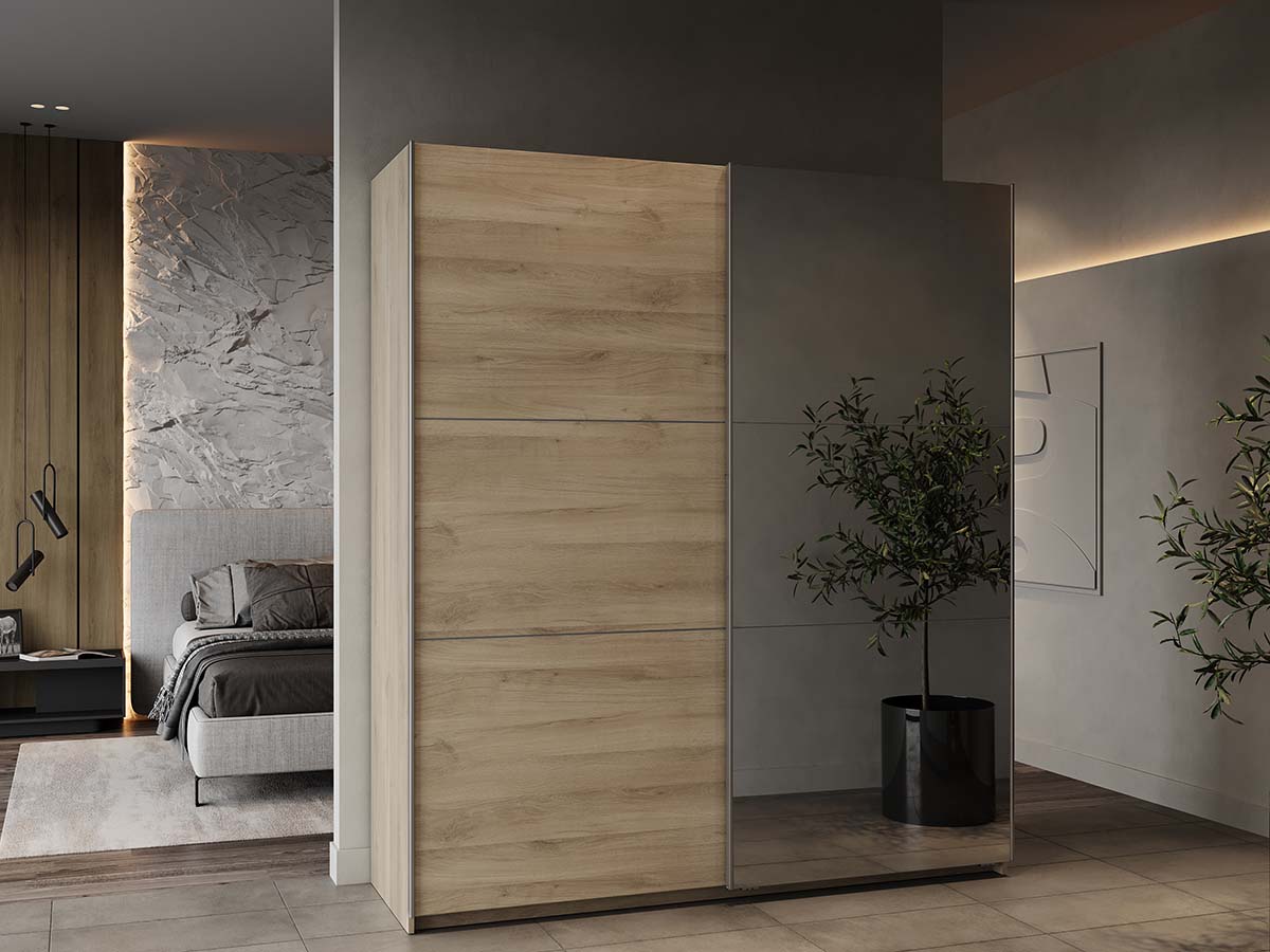 Armoire "CHÊNE" – Armoire à portes coulissantes avec miroir 180 cm