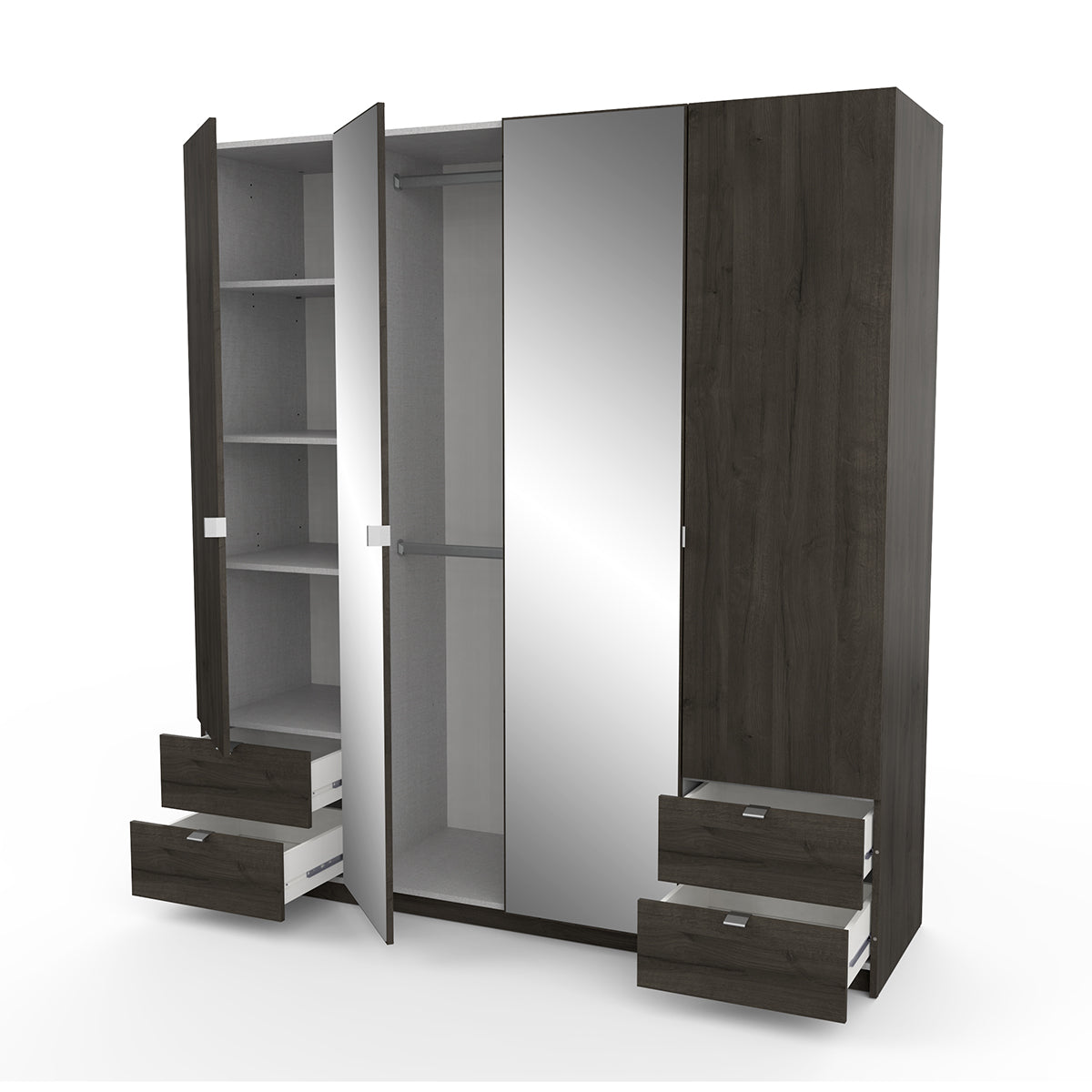 Ce grand placard combine fonctionnalité et style, avec une finition chaleureuse en chêne Waterford et des options de rangement intelligentes. Un choix idéal pour une chambre moderne et organisée.