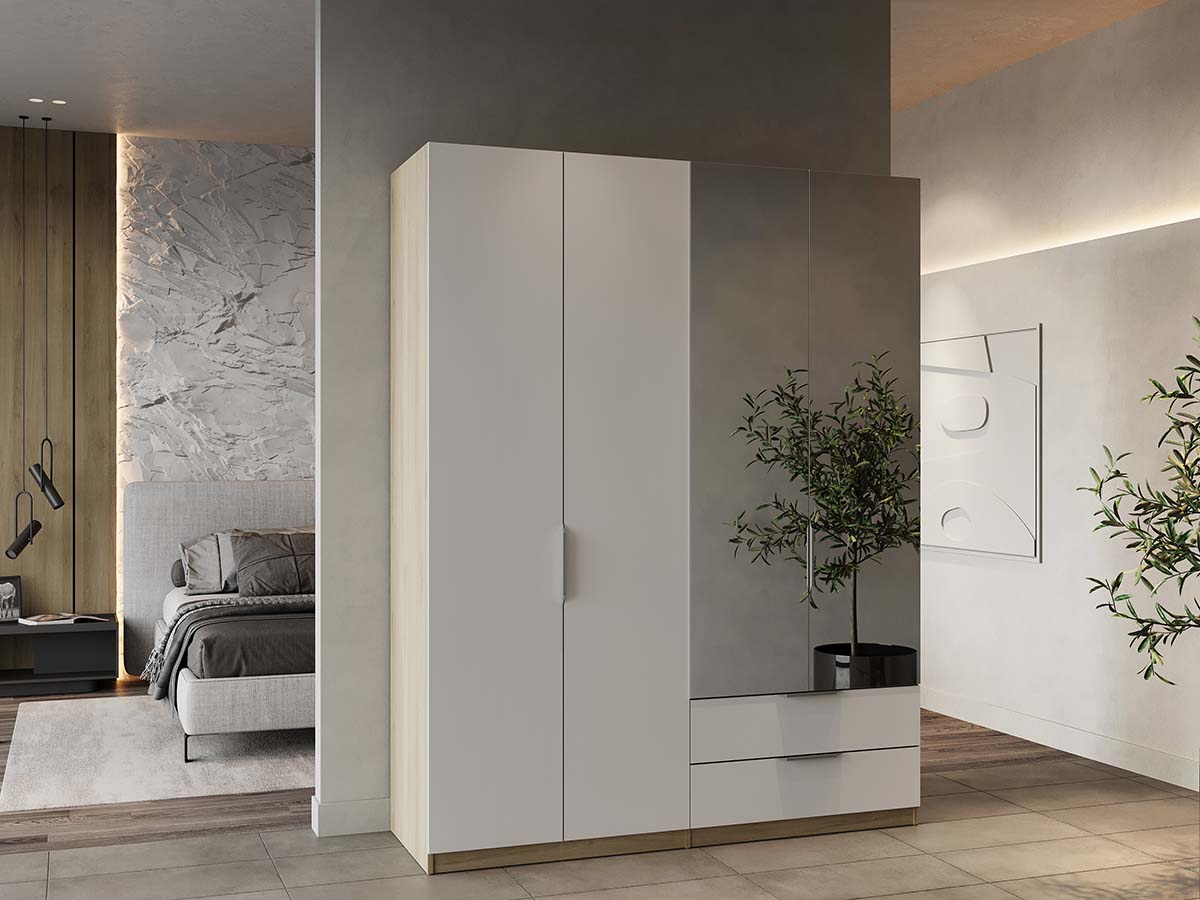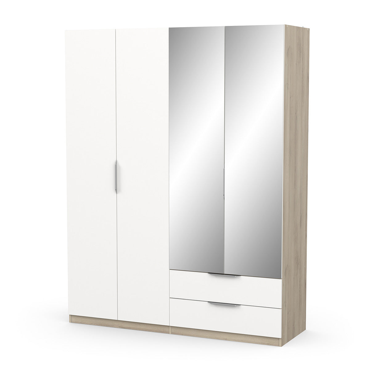4 Portes, 2 Tiroirs, 2 Garderobes : Cette armoire offre un grand espace de rangement avec deux espaces de garde-robe séparés, idéal pour séparer les vêtements et les accessoires.