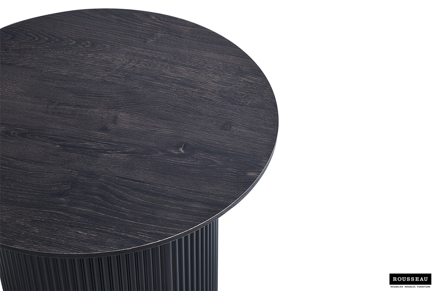 La table basse Lagos est un ajout compact et élégant à tout intérieur. Avec son décor en bois sombre et chaud et sa forme ronde, cette table dégage calme et raffinement. La structure en MDF mat et le plateau de 25 mm d'épaisseur avec décor en papier 3D lui confèrent un aspect naturel et moderne.